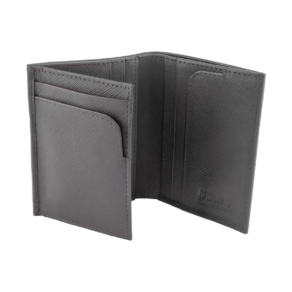 “Carteira pequena de homem em pele com proteção anti-RFID e bloqueio NFC. Contém 2 compartimentos para notas, 6 compartimentos para cartões, 1 compartimento para documentos ou fotos, 2 compartimentos multiusos. Coleção Prestigio. Esta pele é resistente a arranhões, garantindo uma sensação de luxo duradoura.