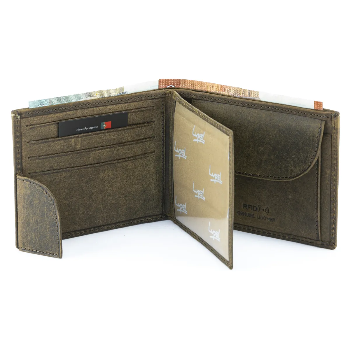 Fabrico artesanal. Os vincos e marcas da pele foram preservados, tornando cada carteira única.