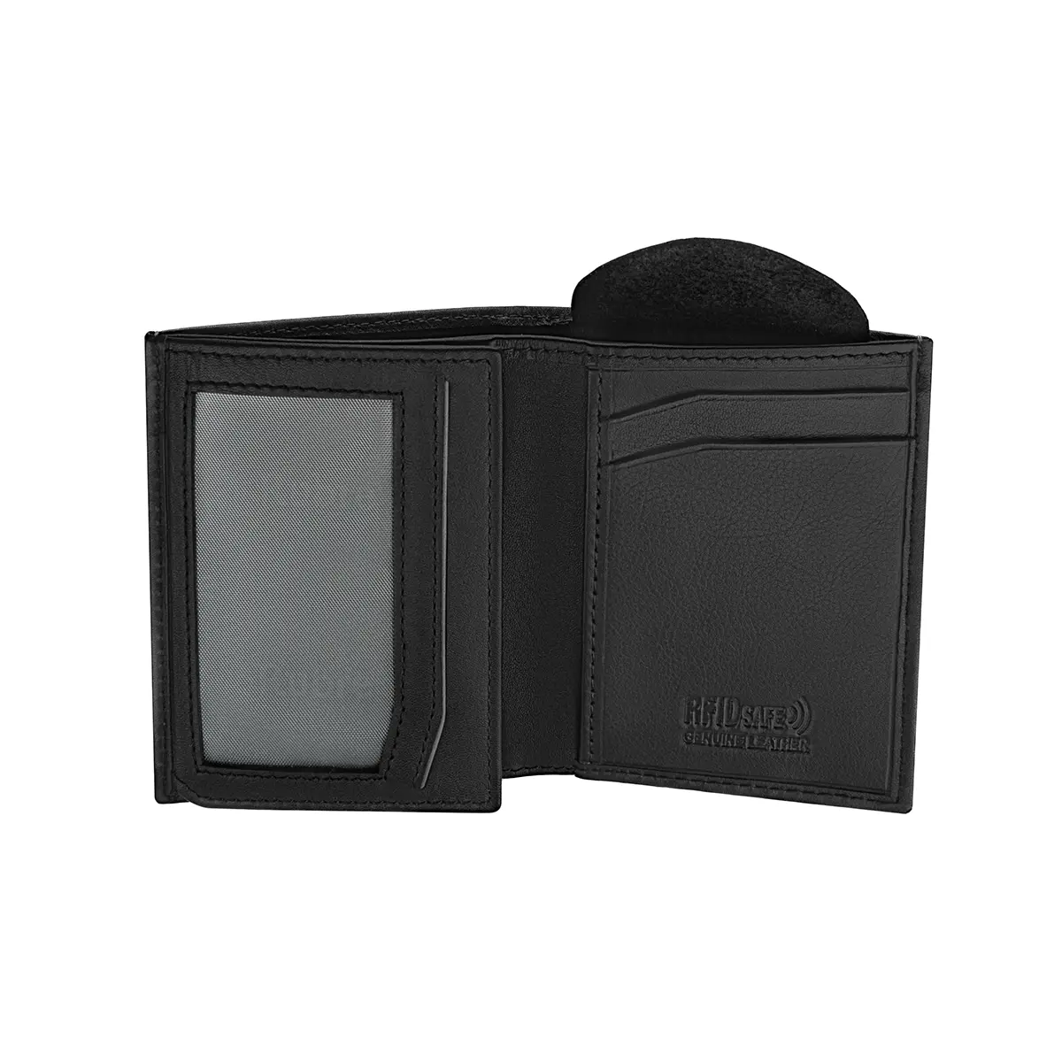 “Carteira de homem em pele com proteção anti-RFID e bloqueio NFC. Contém 1 compartimento para notas, 4 compartimentos para cartões, 2 compartimentos para documentos ou fotos e 2 compartimentos multiusos e 1 porta-moedas secreto. Coleção Elite.