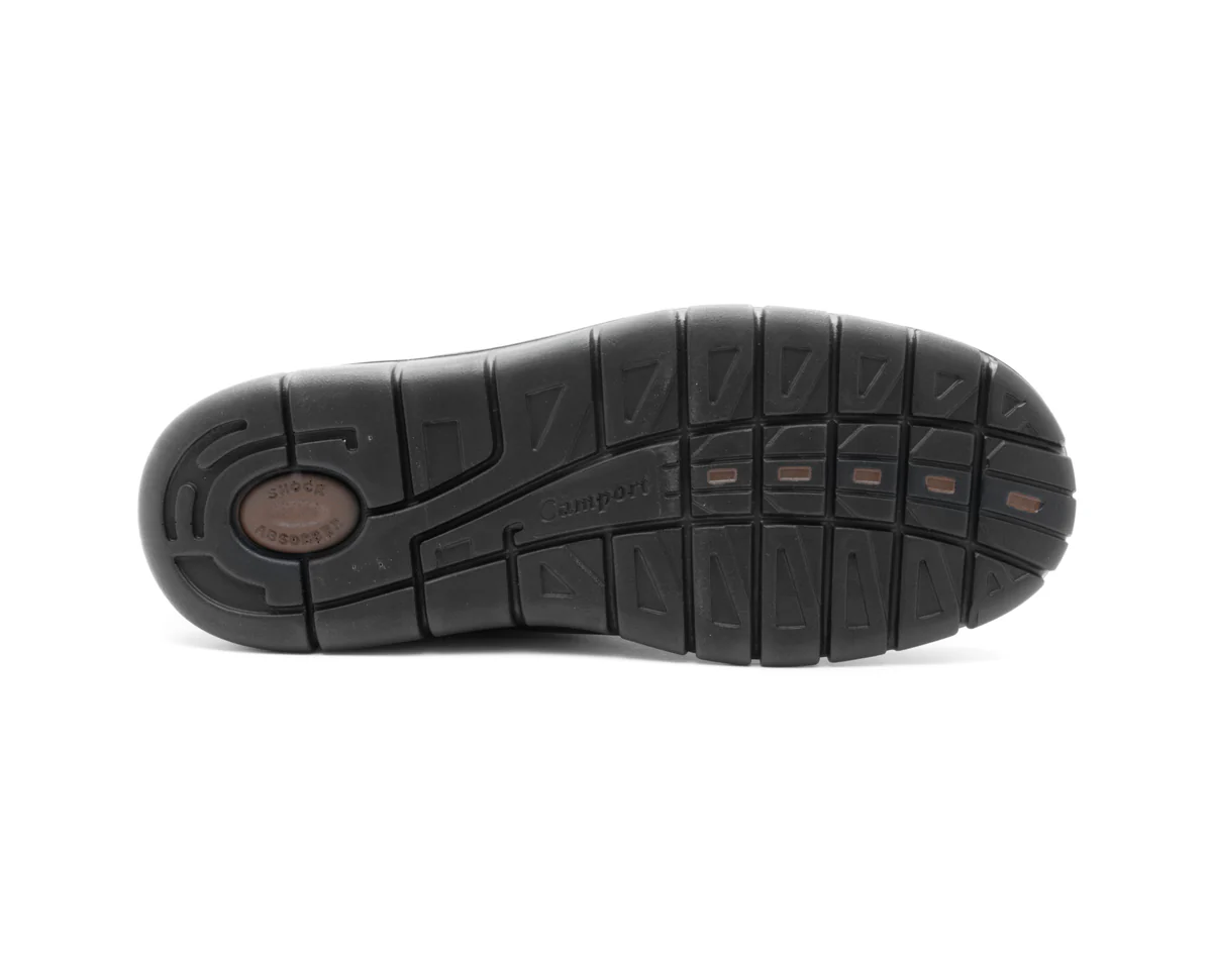 Desportivo e funcional, este modelo oferece excelente durabilidade e conforto. O material proporciona alta resistência ao desgaste. A sola em PU com canais de flexão reduz o esforço ao caminhar e melhora o escoamento da água. O ângulo de ataque ao solo facilita o movimento de enrolamento do pé. O tacão Shock Absorber garante proteção contra impactos, e o Sistema de Injeção Direta em PU assegura leveza, flexibilidade e absorção de impactos. A sola também é anti-estática e resistente à água.